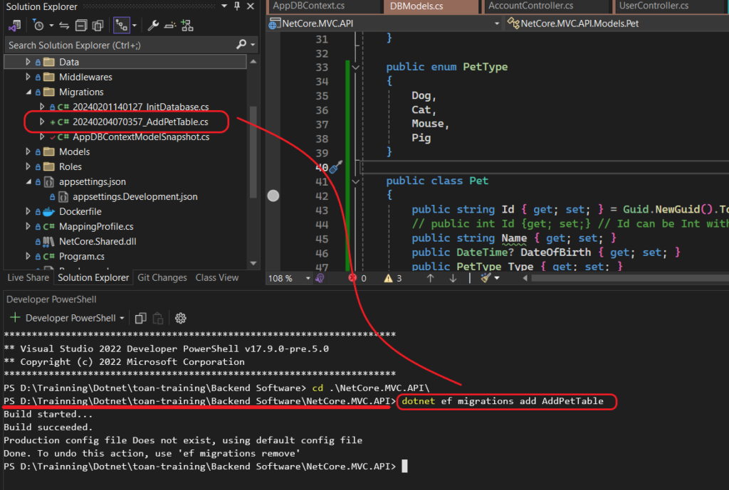 - Chú ý: AddPetTable có thể là tên file bất kỳ