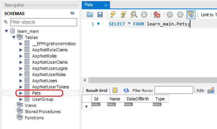 - gồm Id, Name, DateOfBirth (nullable), PetType