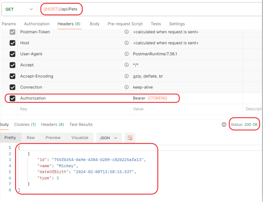 Chạy API GET tất cả danh sách PET